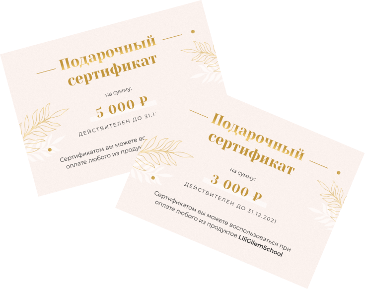 Подарочный сертификат от LiliGilemSchool станет отличным подарком для ваших друзей и близких
